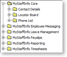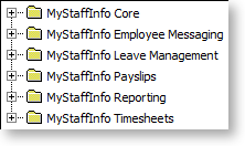 MYOB MyStaffInfo provides extensive controls over what the employee is permitted and is not permitted to see, via the "tree view" at right. Check or uncheck boxes in the tree view to grant or prevent the viewing components on the website.