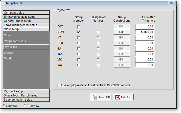 Group Member If the company is a member of a Payroll Tax Group, you need to set up the contributions paid in each state. Tick the option for each state in which there is a group member.