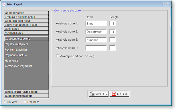 Mixed proportional costing Selecting this option activates the ability to have both proportional costing and direct costing in the same pay. With direct costing, a value is directed straight to a Cost Centre; however, with proportional costing, the values are valued to Cost Centres by either a percentage or the number of hours worked.