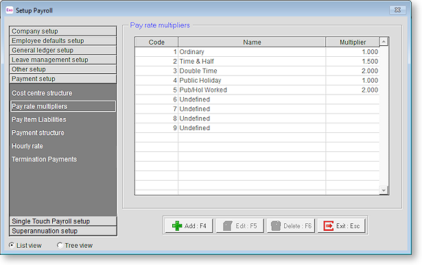You can add an unlimited number of Pay rate multipliers. Click on the Add button in order to add a new code and rate.