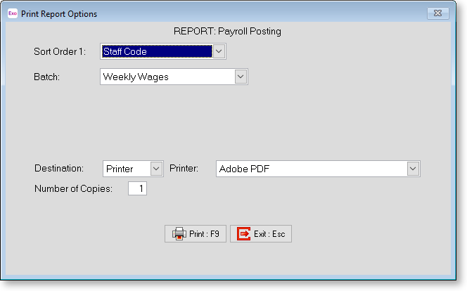 Batch This option is only available for the Posting Report and allows you to select a specific batch to print for.