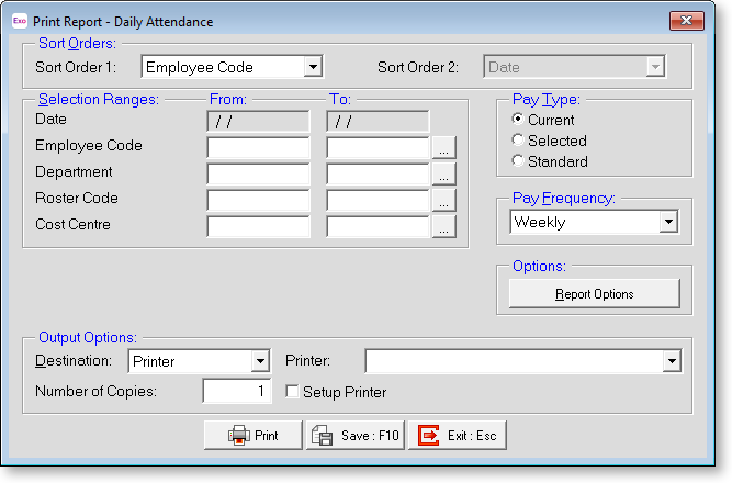 This determines the date\pay period to which the report relates. Select the type required. Choose from: