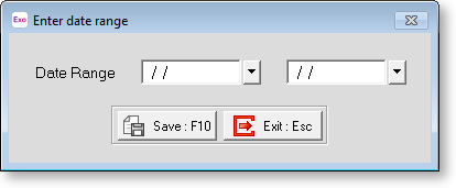 Enter the date ranges you want to report on, then click Save or press F10 to continue the run.