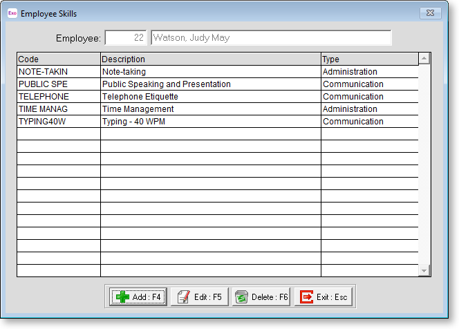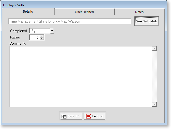 Rating Some skills may be developed over time, and rated according to a grading system of some sort. You can alter an employee's grade here as they develop their skills.
