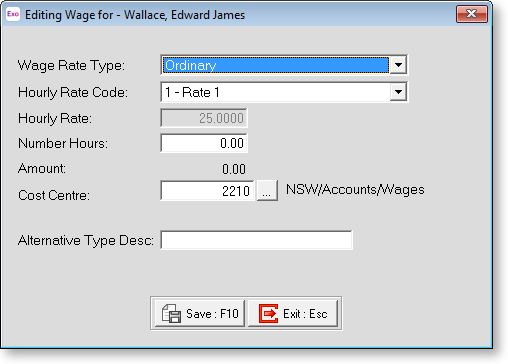Once you have entered all the required information, click Save or press F10 to save and return to the Wages window.