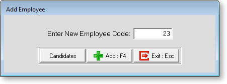 To add a new employee, enter the Employee Code number and click Add.