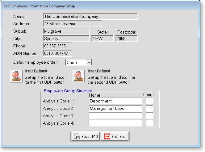 The structure that you put in place here determines how the employee groups are set up. Operators that are familiar with the Cost Centre structure in MYOB Exo Payroll will see the similarities in this area.