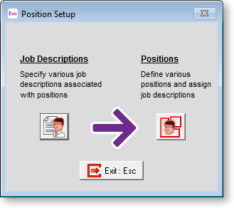 Select Step Three from the Setup Cycle to set up the positions that will be assigned to employees.