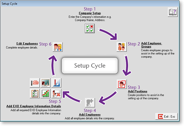 Before you can enter any employee information and commence the preparation of your database it is necessary to set up the system to handle your company's unique requirements.