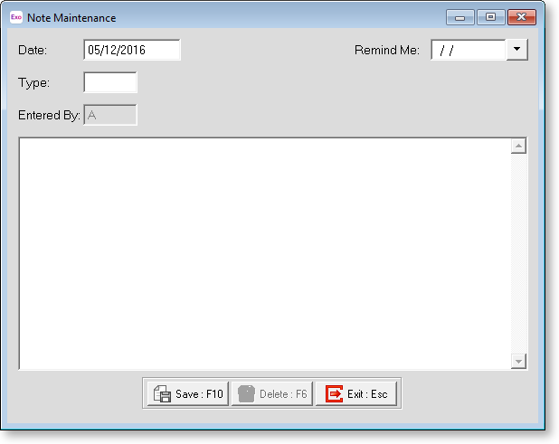 From the Notes Tab, click Add or press F4 to add a Note. The following screen appears.