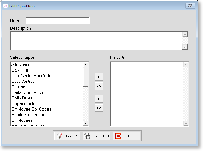 A report run is a way of grouping reports together to process several at a time. This saves the repetitive task of having to navigate to, set up, preview, and print the same reports from the Select Report screen every time you need them. When a report is in a run, it can be customised permanently for that run.