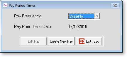 If this is the first time you have entered this screen for the Pay Period the window will display two fields: