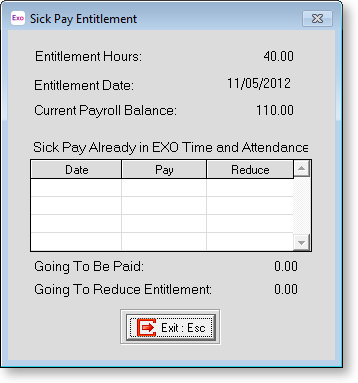 You are presented with a window showing the status of the employee's entitlement (Holiday, Sick or Alternative Leave Accrued). This way you can make a decision whether you will pay it or not.