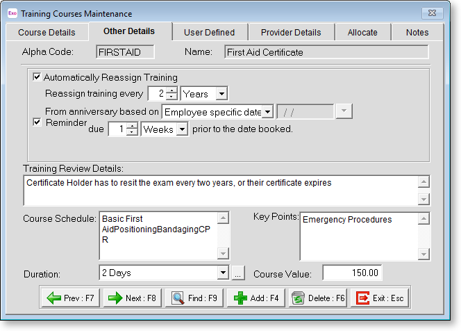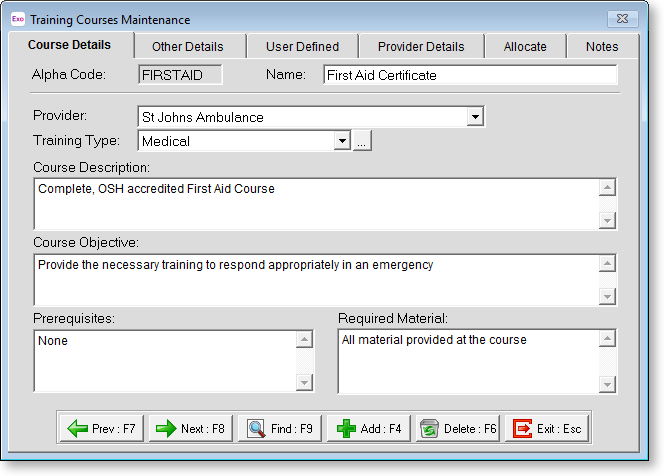 MYOB Exo Employee Information lets you record details of the providers of training courses that your organisation uses, and the Training Courses that your employees attend.