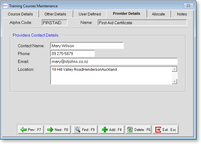 These details are filled in automatically, based on the Training Provider selected on the Course Details tab. They can be altered manually if necessary.