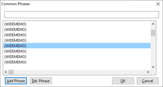 When you get this error you won't be able to use common phrases, as your list items will be replaced by the term (WIDEMEMO).