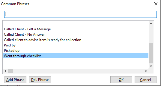 Common phrases is a a library of text snippets you can create and choose from when entering notes. To use the feature, press Ctrl+' (apostrophe) in a field that supports it, such as history notes.
