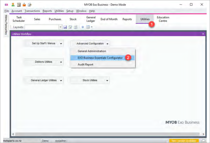 Option 1 – Access Exo Configurator via Exo Graphical menus.