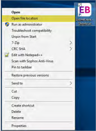 Right-click and select Open file location: