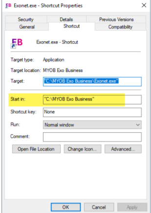 Either option above should get you to the central MYOB Exo folder, where you can then locate Exocfg.exe and run the program: