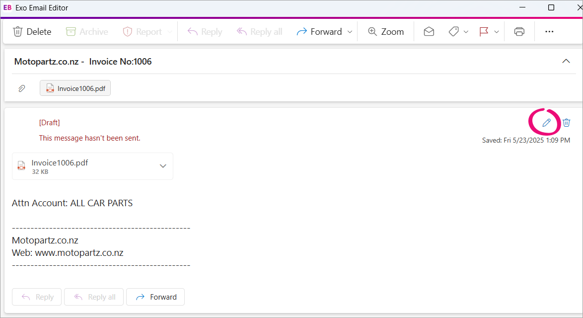If the Confirm before sending email profile is selected, then when you send an email it’ll open in a read-only mode. To edit the recipient’s email address or the body of the email, click the edit icon. This is a limitation of Graph API.