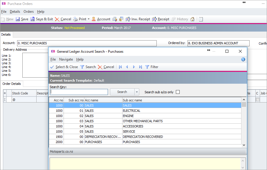On the Purchase Orders and Debtor Invoice screens, there's a quick way to open the General Ledger Account Search window.
