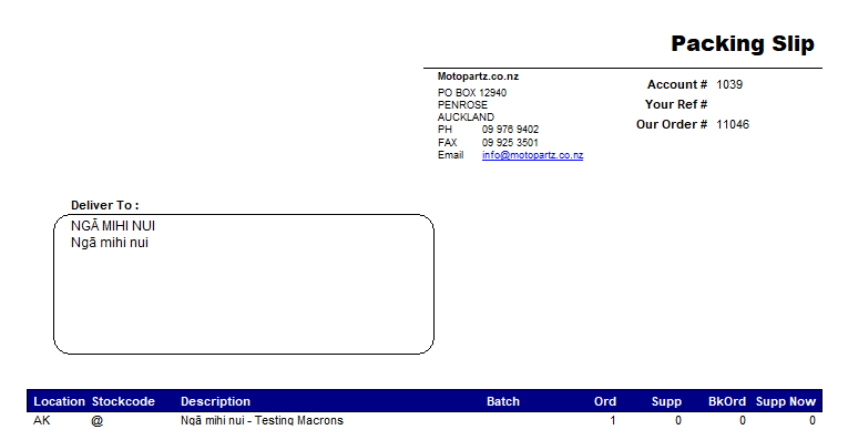 Example without Unicode Text set for the Report export/email (No Macrons/foreign characters):