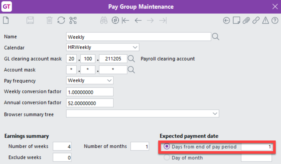 Greentree uses the "Days from end of pay period" set in Pay Group Maintenance to calculate the expected payment date for each pay batch and apply the appropriate tax rate and super rate. Go to menu HR > System > Payroll > Pay Group Maintenance, check and update this in each active pay group.