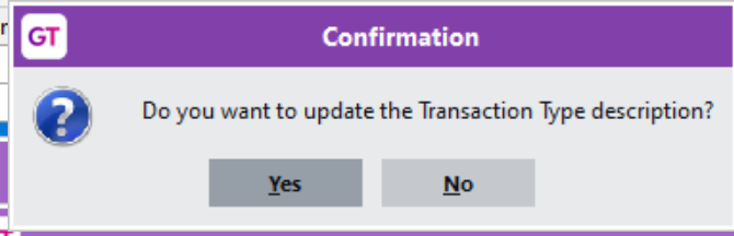 Click Yes to update the description on the Transaction Type with the description contained in the file.