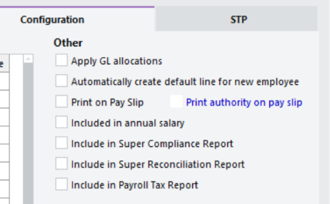 STP Configuration sets STP contact info as well as STP categories for each transaction type. Setting can be reviewed before final submission, via menu HR > System > Payroll > STP configuration.