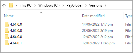 To find the current version folder, go to Help > About > Details in PayGlobal.