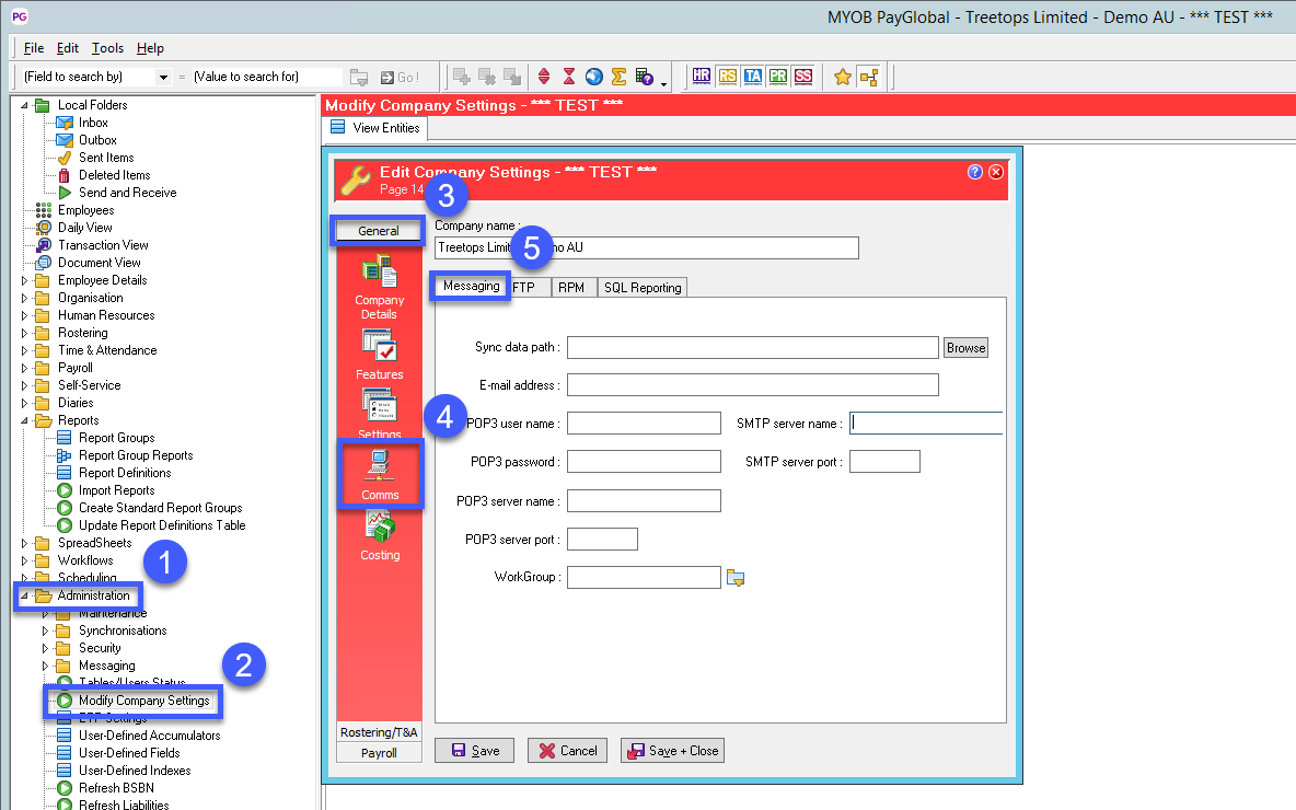You can adjust and update these SMTP settings based off of your IT teams instructions by going to Modify company settings > Comms > SMTP server name