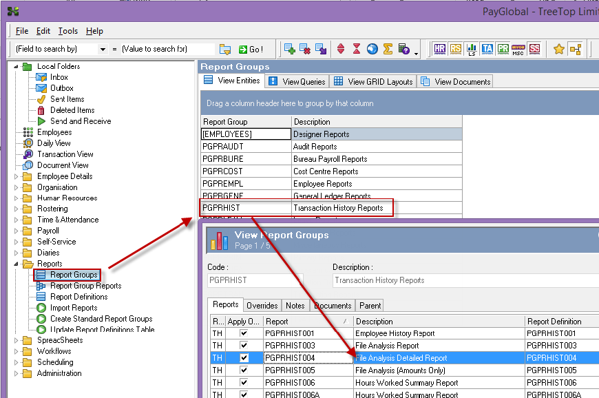 This page explains how to run the PGPRHIST004 – File Analysis Detailed report, which shows how the GL codes and Cost Centre codes are mapped in MYOB PayGlobal.