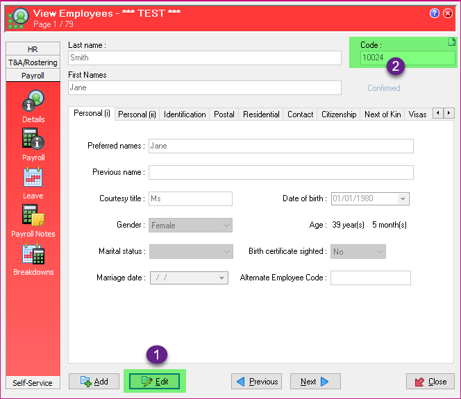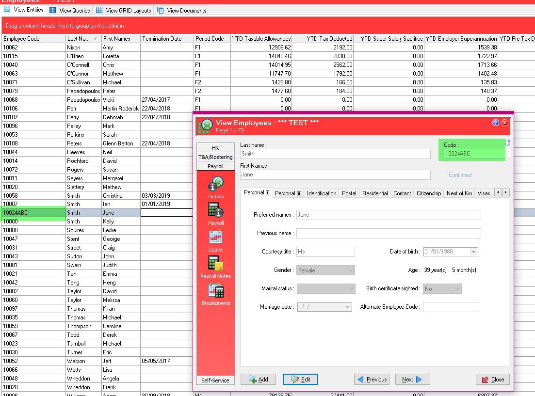 You cannot change the employee code in Australian Databases if you have already sent a STP Submission to the ATO containing the employee.