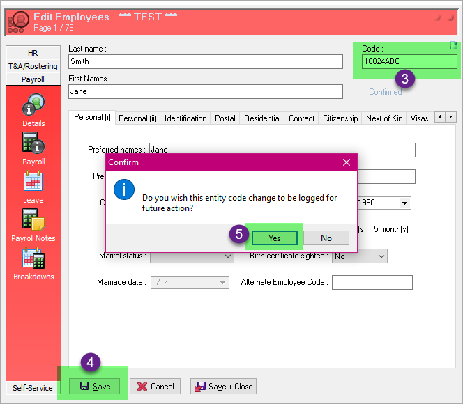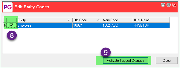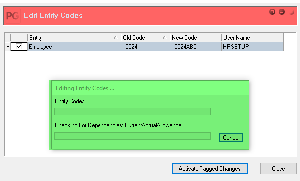 PayGlobal will then go through all the tables that have the employee code in them and update it.