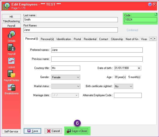 If you are changing the employee code, you must NOT do this when a pay sequence is open as it may cause the pay to crash on close.