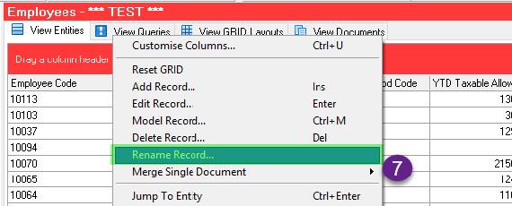 Right-click on the Employee Grid and select Rename Record.
