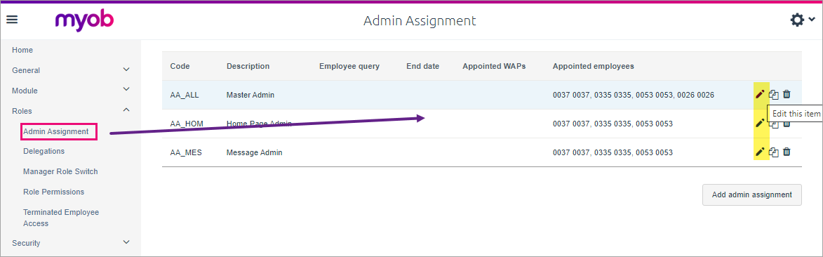 Below are the steps for assigning Administration Roles (admin roles) to employees.