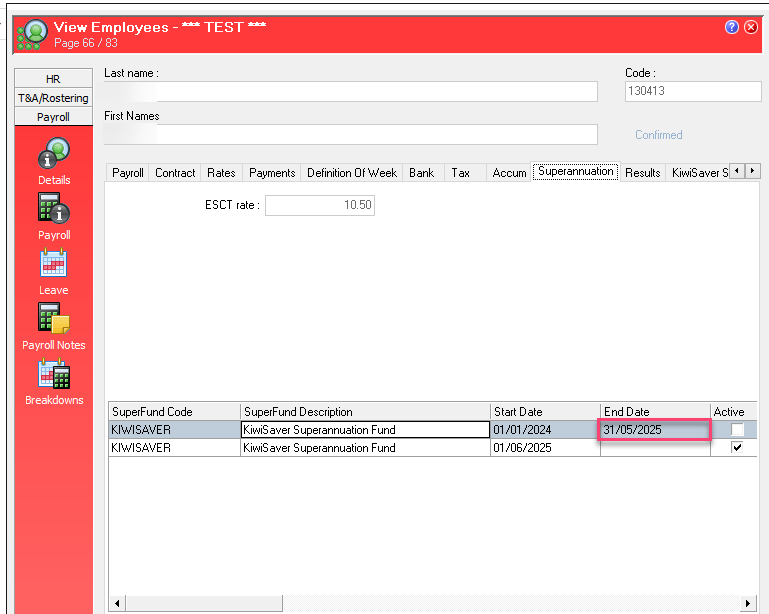 Add a New KiwiSaver Fund and set 0.00% on the Employer % under the Allowance Tab