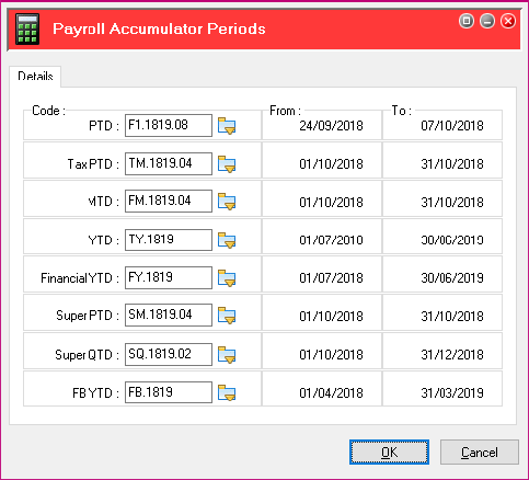 Please make sure the codes and dates displayed are from the last pay closed in the current financial year in your database.