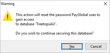 - Click Yes to continue securing the database.