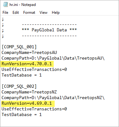 After you restore and secure the database, you will need to confirm the database version and check the Test company is set to the correct version in the Hr.ini file.