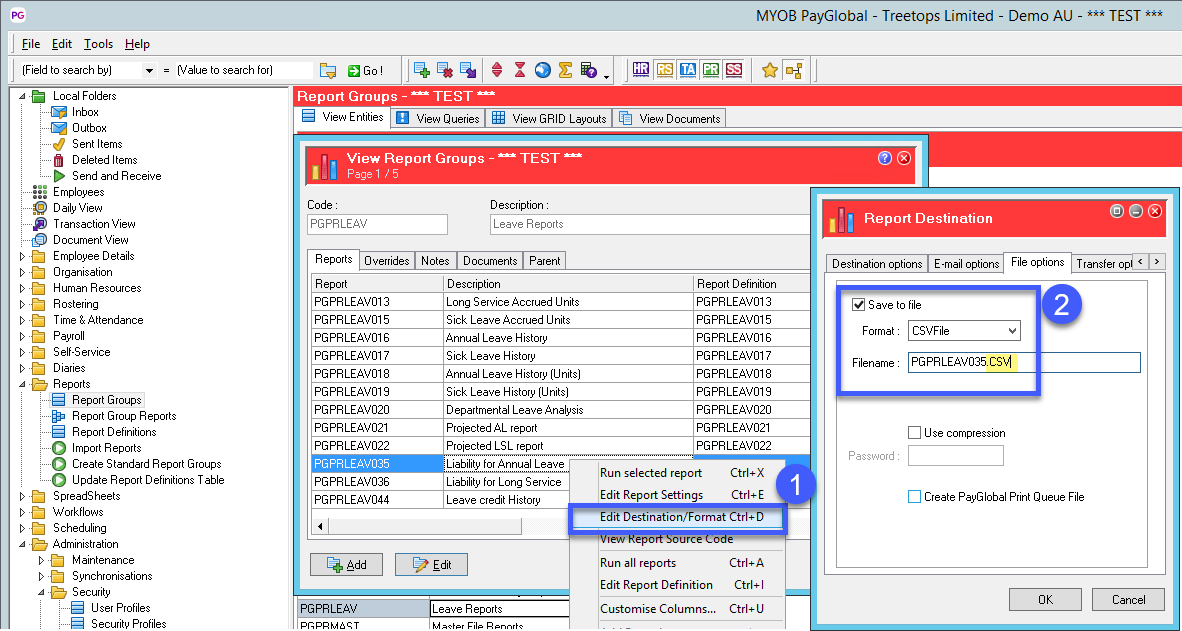 Important: Not all reports can be saved and generate XLS/CSV data