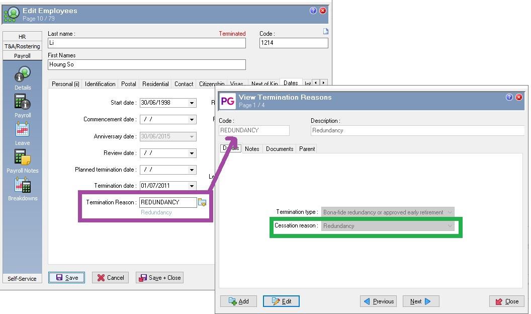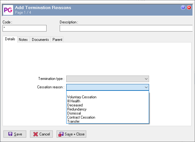 PayGlobal supports the cessation type you need to capture in a new field called Cessation reason; located on the Termination reasons table.
