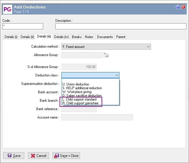 - Child support – This reflects deductions made under a notice as per section 45 of the Child Support (Registration and Collection) Act 1988.