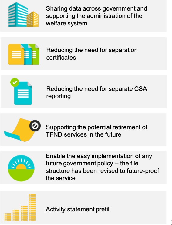 The intent is to simplify reporting obligations for employers. For example, you will no longer need to send an Employment Separation Certificate to Centrelink.