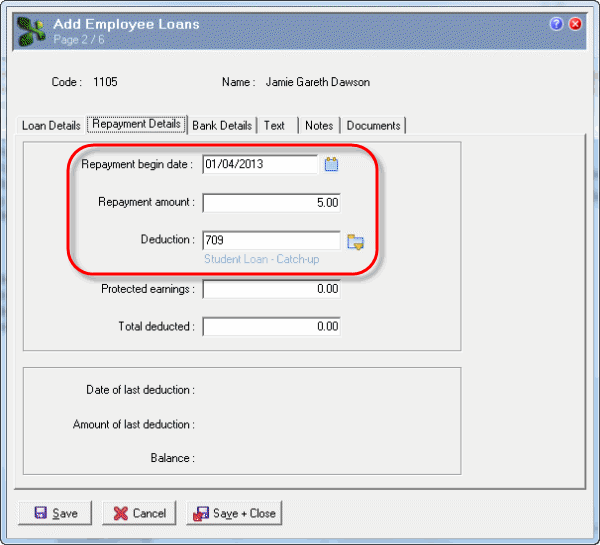 The IRD has asked you make an additional 5% student loan repayment for Jamie to repay $5,000 starting from his next pay, which is 01/04/2013.