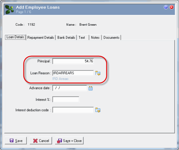 Attach a scanned copy of the IRD Section 157 notice to Brent's Documents tab. When you open Brent's next pay after 01/04/2013, PayGlobal creates an Arrears transaction from his Employee Loans record.